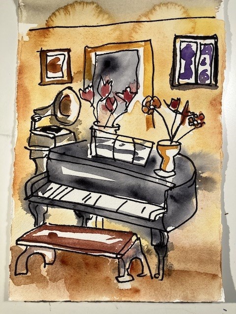 Välkommen till min hemsida! Här finner du akvareller som oftast är gjorda med en blandteknik där tuschskisser är viktiga inslag. Färg och linjespel i samverkan fungerar väl i mina händer. Papperets vita bakgrund är viktig i de urspaningar som ofta är lika väsentliga som färgsättningen.